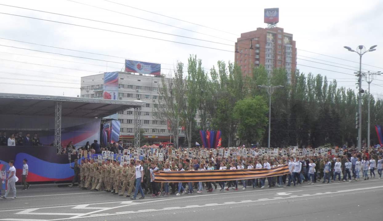 Наряду с портретами героев Великой Отечественной войны, люди несли портреты своих родных и близких – воинов-интернационалистов, а также героев Донбасса, отдавших свои жизни в боях с украинскими карателями. Всего в шествии "Бессмертного полка" в столице ДНР, которое продолжалось более часа, приняли участие около 72 тысяч человек, в том числе жители временно оккупированных киевским режимом территорий Донбасса и бывшей Украины.
